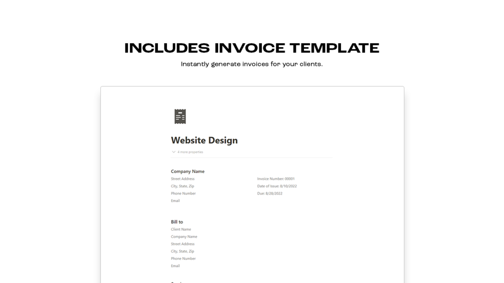 Easily manage all of your invoices in Notion. This template gives you the essentials you need to quickly send invoices to your clients and organize your income in one place.